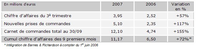 Chiffre d’affaires du 3è trimestre 2007 : + 57%