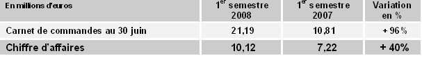 1er semestre 2008 Chiffre d’affaire : + 40 % Carnet de commandes : + 96%