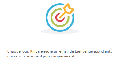 Parce que le ressenti des premiers pas d’une relation pèse pour 78% de la satisfaction globale d’un client, Kiliba propose à ses clients e-commerçants d’envoyer un email mettant en avant ses produits « stars » trois jours après leur ouverture d’un compte client. Cet email contient 6 produits stars : les 3 produits les plus vendus et les 3 produits les plus visités. Kiliba s’assure qu’un client ne reçoive jamais un produit qu’il vient d’acheter.